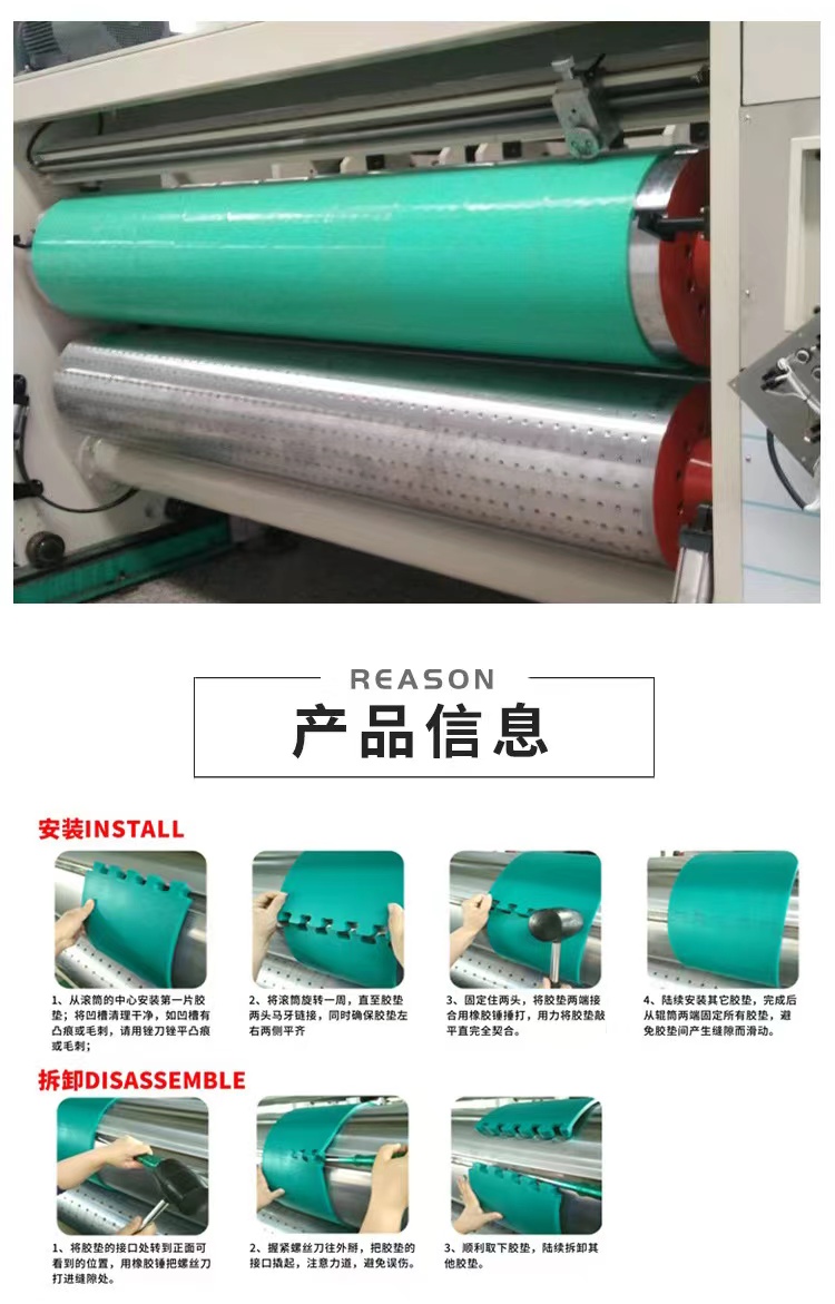答:我们所有胶垫经检验合格才允许出厂的,2个月之内如果有脱扣,脱胶现象发生,我们免费补发换货!初次使用建议您重新调整好整体压力再生产,模切刀迟钝的话强烈建议更换新刀,因为迟钝的刀最容易耗损胶垫,会大大缩短胶垫的寿命!四联模切建议4条一起换掉,因为这样才能压力均衡,新的和旧的一起使用的话磨损程度不一样,压力不均 刀固然会有的切的深 有的切的浅。买前测量好尺寸发货的,货尺寸不对可以更换,(运费由买方承担)但是建议一次性核对好,省的来回退换货的麻烦!