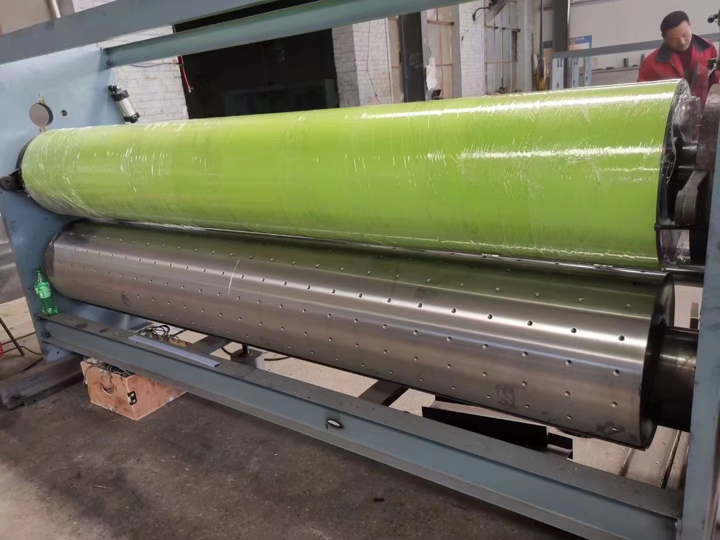 3、从滚筒的中心安装第一片胶垫;